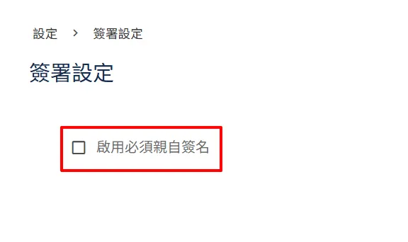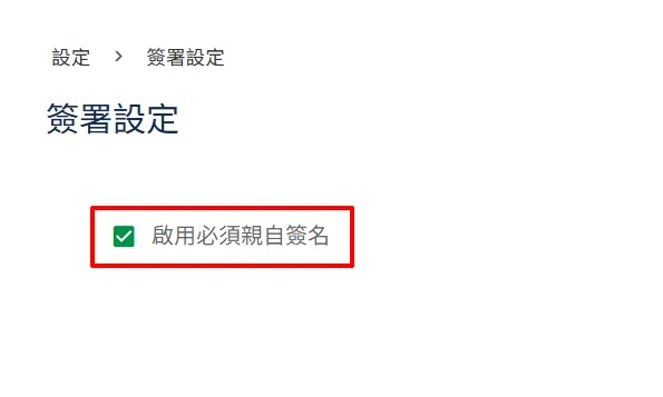 2. 當勾選【啟用必須親自簽名】時,所有簽署者在同一份文件中的每一個簽名皆須親自簽署。
