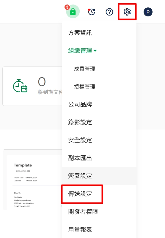 - 點擊右上角【設定】開啟選單,選擇【傳送設定】。