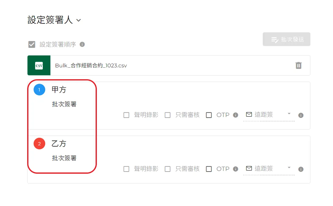 8.會看到設定簽署人的地方已標示為批次簽署。