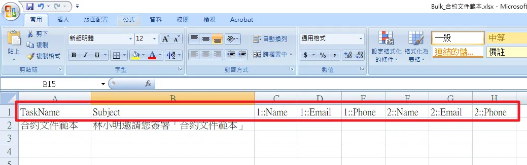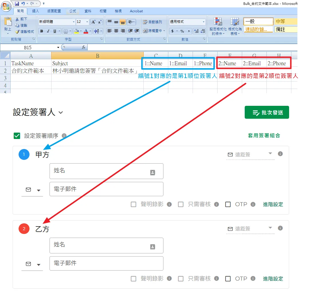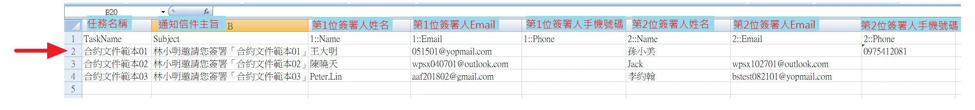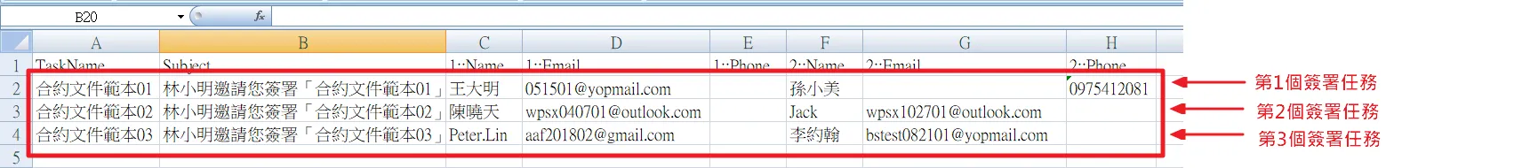 7.每一列簽署人資料代表著一個簽署任務。