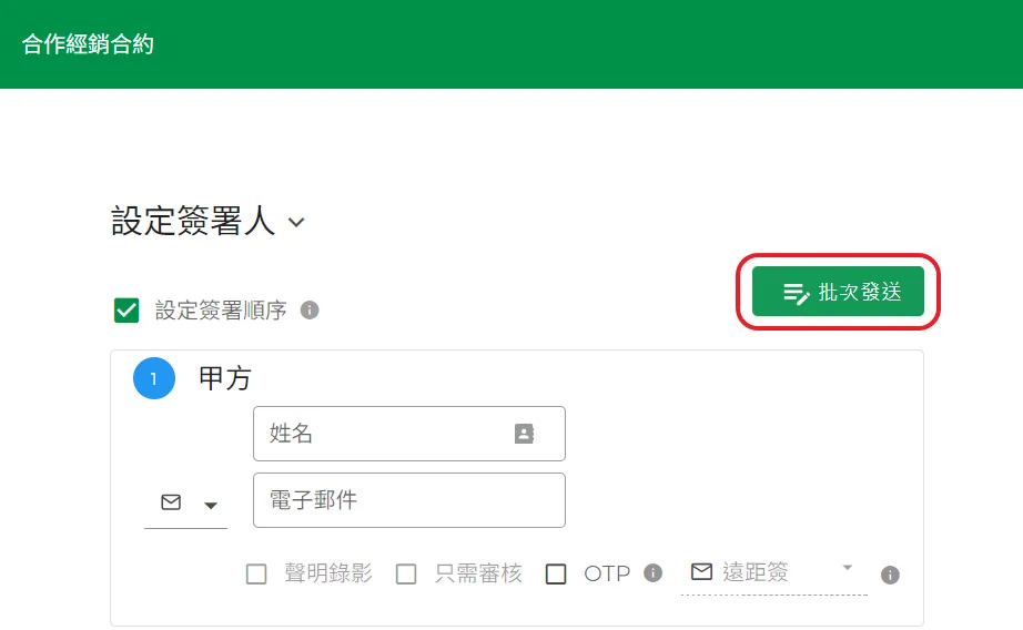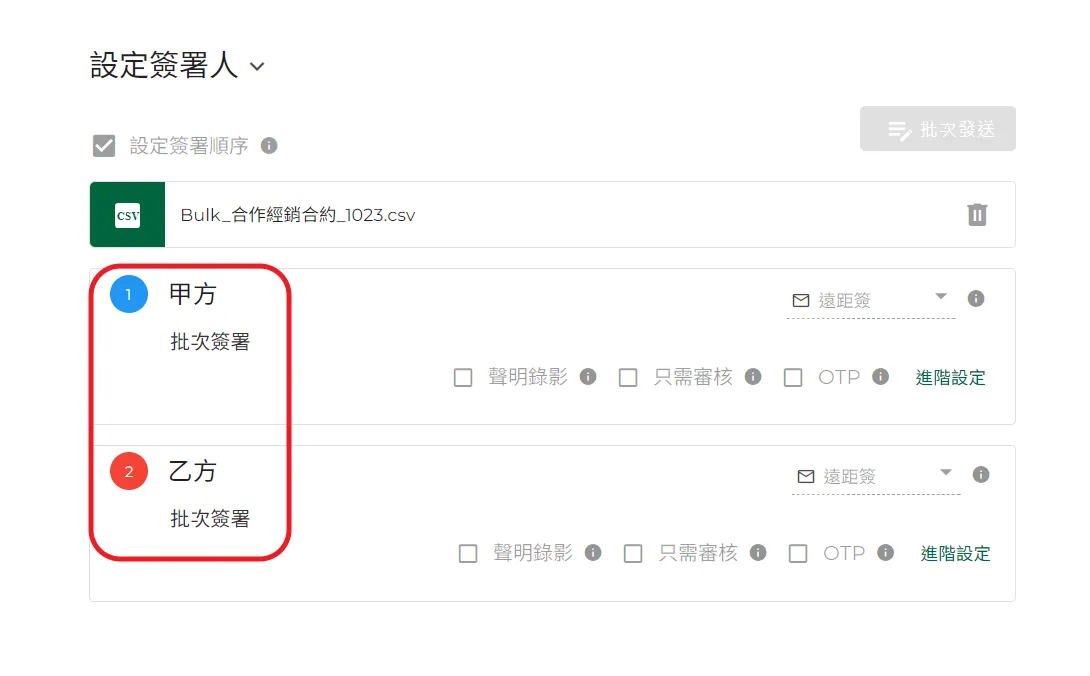 13.會看到設定簽署人的地方已標示為批次簽署。
