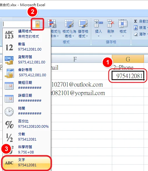(2) 如果有輸入電話,請將該欄位的格式調整成「文字」,並且在最前方補上數字「0」。